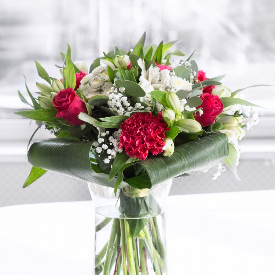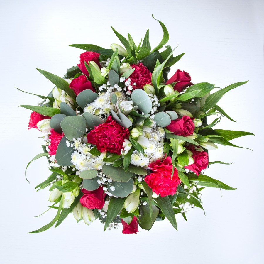 Such a beautiful and elegant bouquet. The red and white flowers are perfectly balanced.