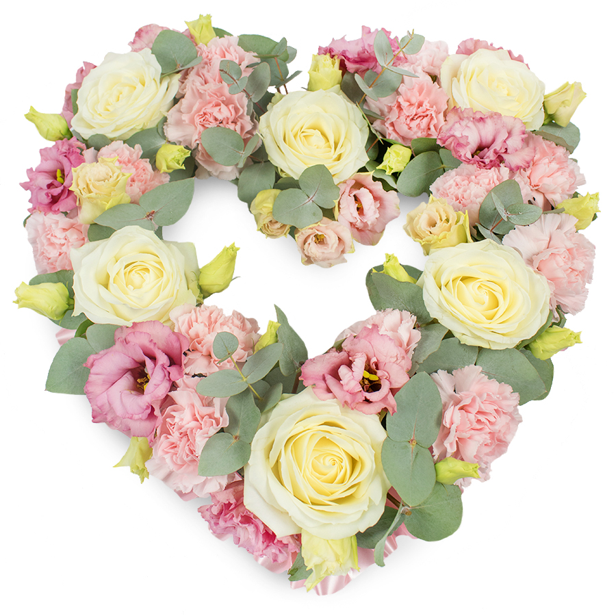 Our Graceful Memorial Bouquet offers a poignant way to remember and honor a loved one. This stunning arrangement blends white roses, pink carnations, pink lisianthus, and eucalyptus, thoughtfully arranged to create a serene and beautiful tribute.
